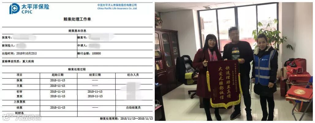 资料拍扫、上传、审核,简单几个步骤,客户足不出户,仅用太e赔即顺利收到10万的癌症关爱保险金。