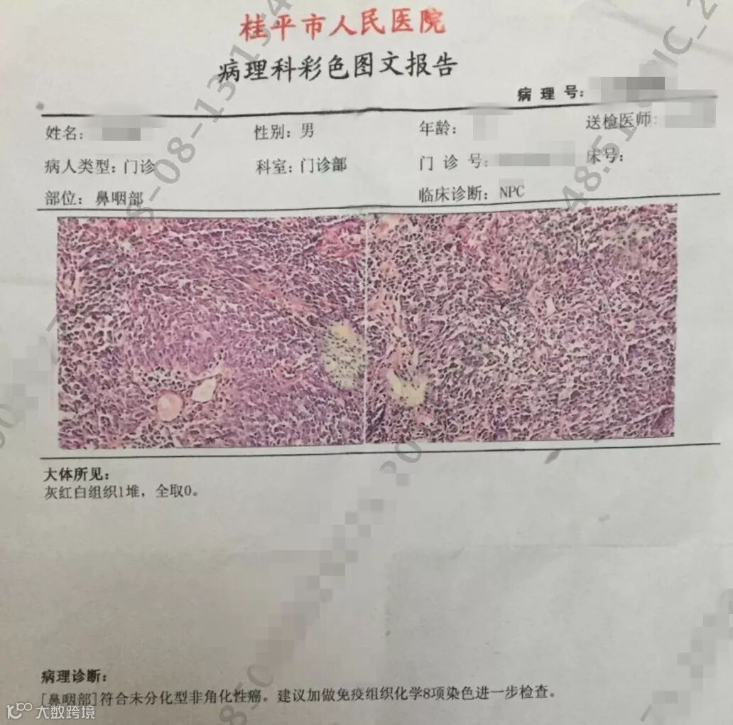 2018年7月27日,黎先生最终在家人的陪同下前往了附近的桂平市人民医院就诊。一查不知道,一查吓一跳......颈部的突出物竟然是因为鼻咽癌所致。