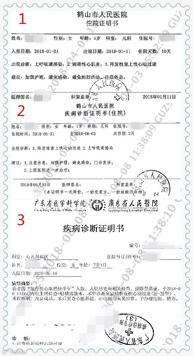 李女士带着小晴到鹤山市人民医院求诊,医生诊断为上呼吸道感染、病毒性心肌炎、阵发性室上性心动过速并要求住院治疗。经过10天的治疗后,康复出院。接下来几个月,小晴身体一直未见异常,李女士便没有太关注小晴的心脏问题。