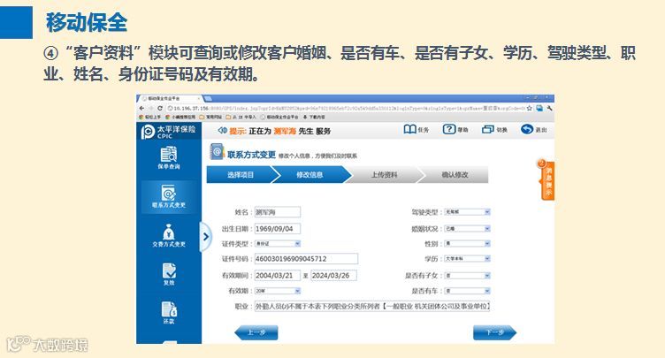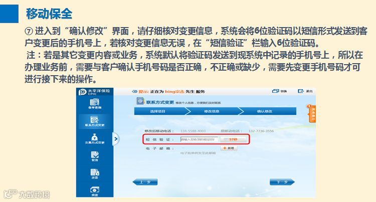 移动保全变更客户信息