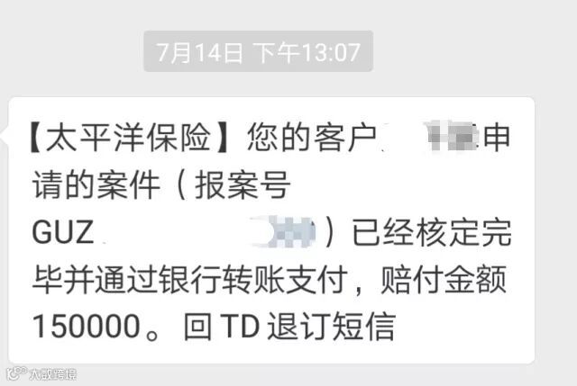 13:07 赔款到账