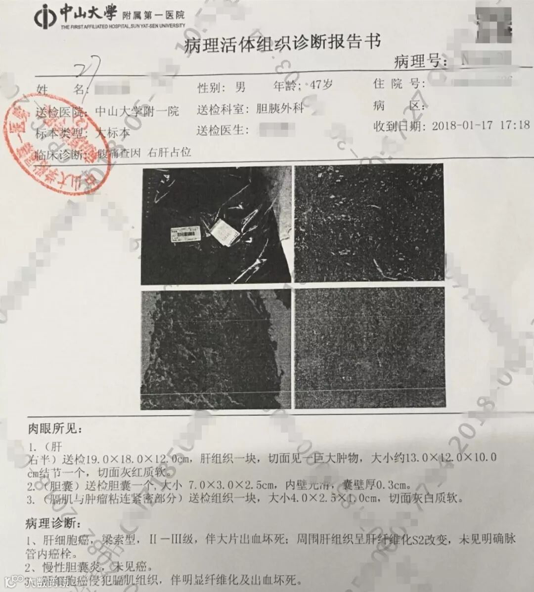 2018年01月17日,程先生由于剧痛难忍,终在家人的劝说下前往了居住地附近的中山大学附属第一医院就诊。经检查后发现,这种腹痛竟然是肝癌引起的......从那天起,程先生就在家人的陪同下,开始了漫长的抗癌之路......