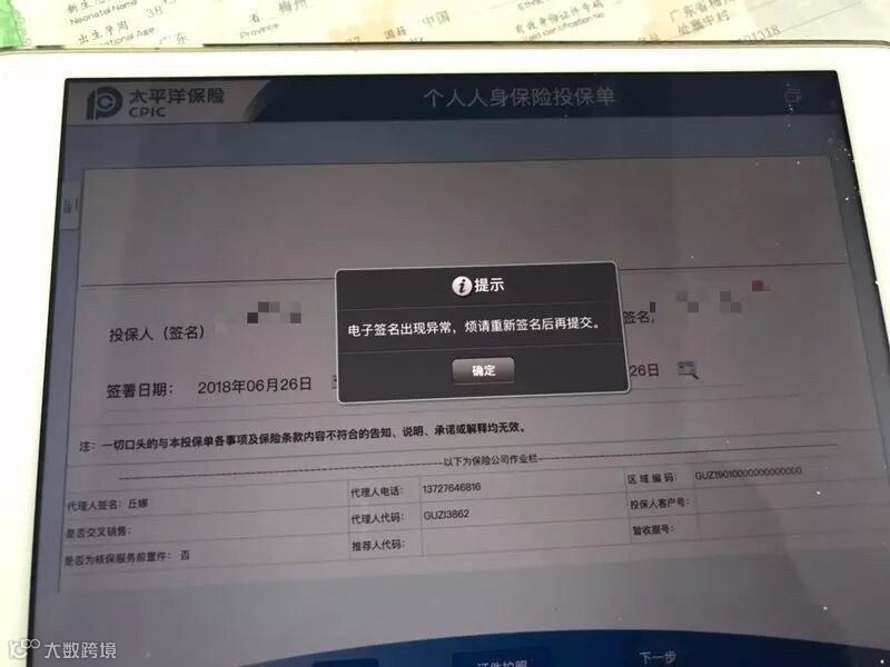 客户名字有生僻字“未能识别签名,请用正楷重新签字”