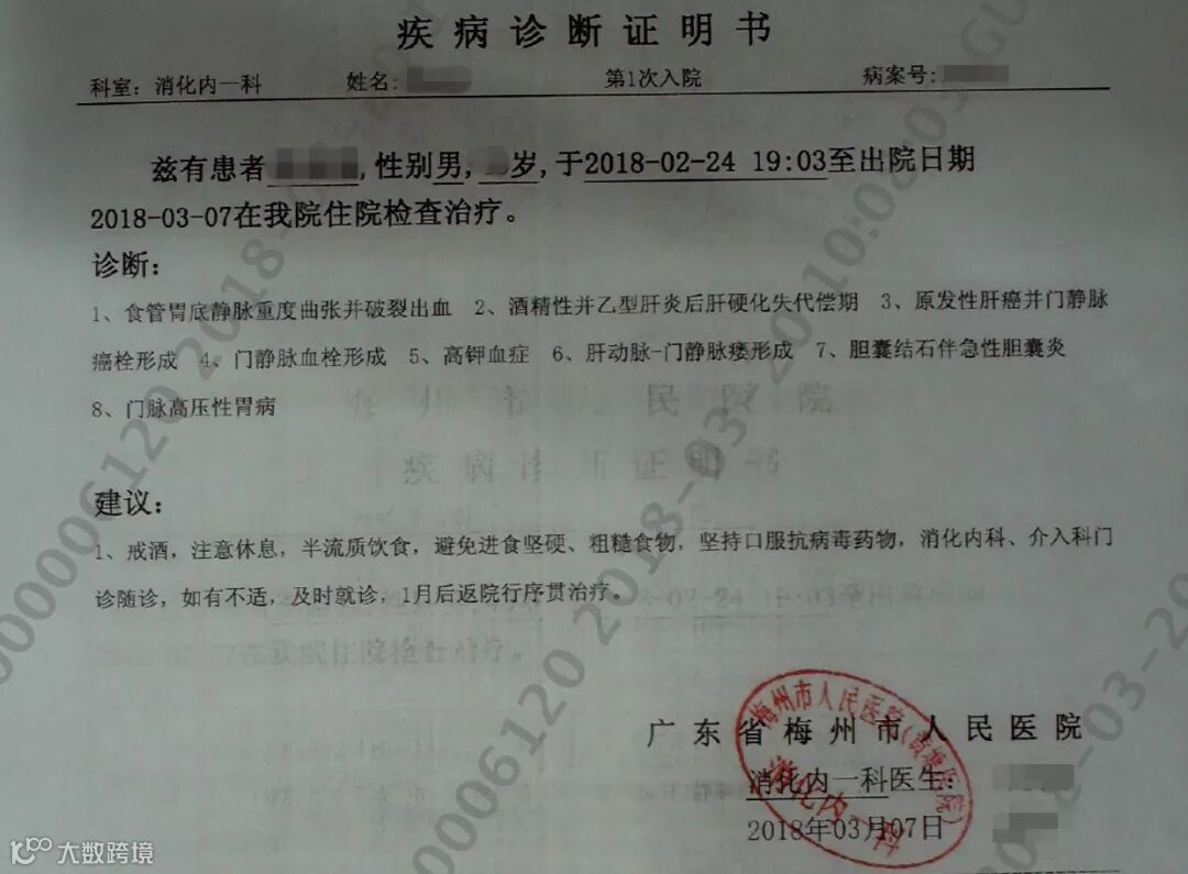 2018年2月24日,身体健壮的李先生突然呕血、解黑便,家人急忙送其到梅州市人民医院就诊,经检查确诊为原发性肝癌。面对突如其来的疾病以及后续高额的治疗费用,一家陷入了困境。
