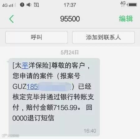 16:40 赔款到账