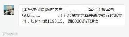 一个半小时后,一声短信接收提示打断了二人的谈话。1193.15元赔款到账了!