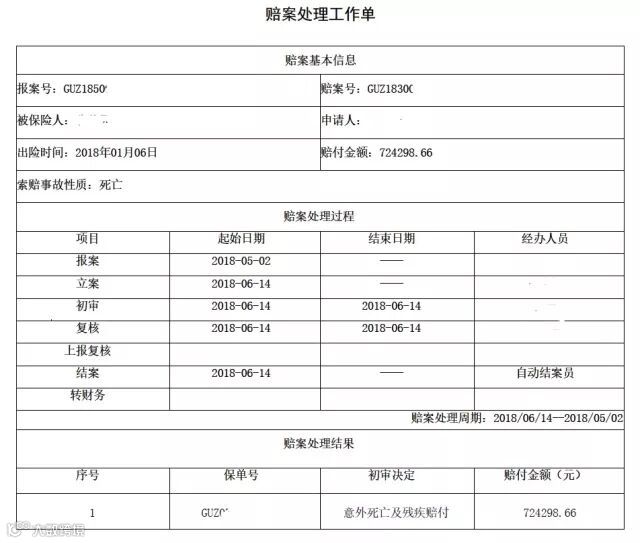 6月14日一早,理赔人员便将相关资料进行了系统录入,由于报案后的及时跟进,资料准备妥当,事实清晰,在当天下午72万余元的赔付便已到账!