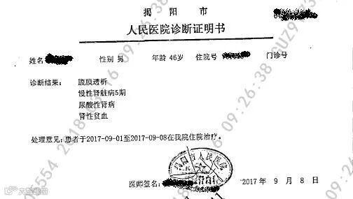 2017年1月,刘先生出现脚关节痛风情况。因症状不明显,且忙于工作,一直没去医院检查。到了8月份,刘先生开始出现眼睑浮肿的症状,这才在家人的催促下到医院就诊,被确诊为慢性肾脏病5期。此后几个月,刘先生需要持续住院做腹膜透析治疗。
