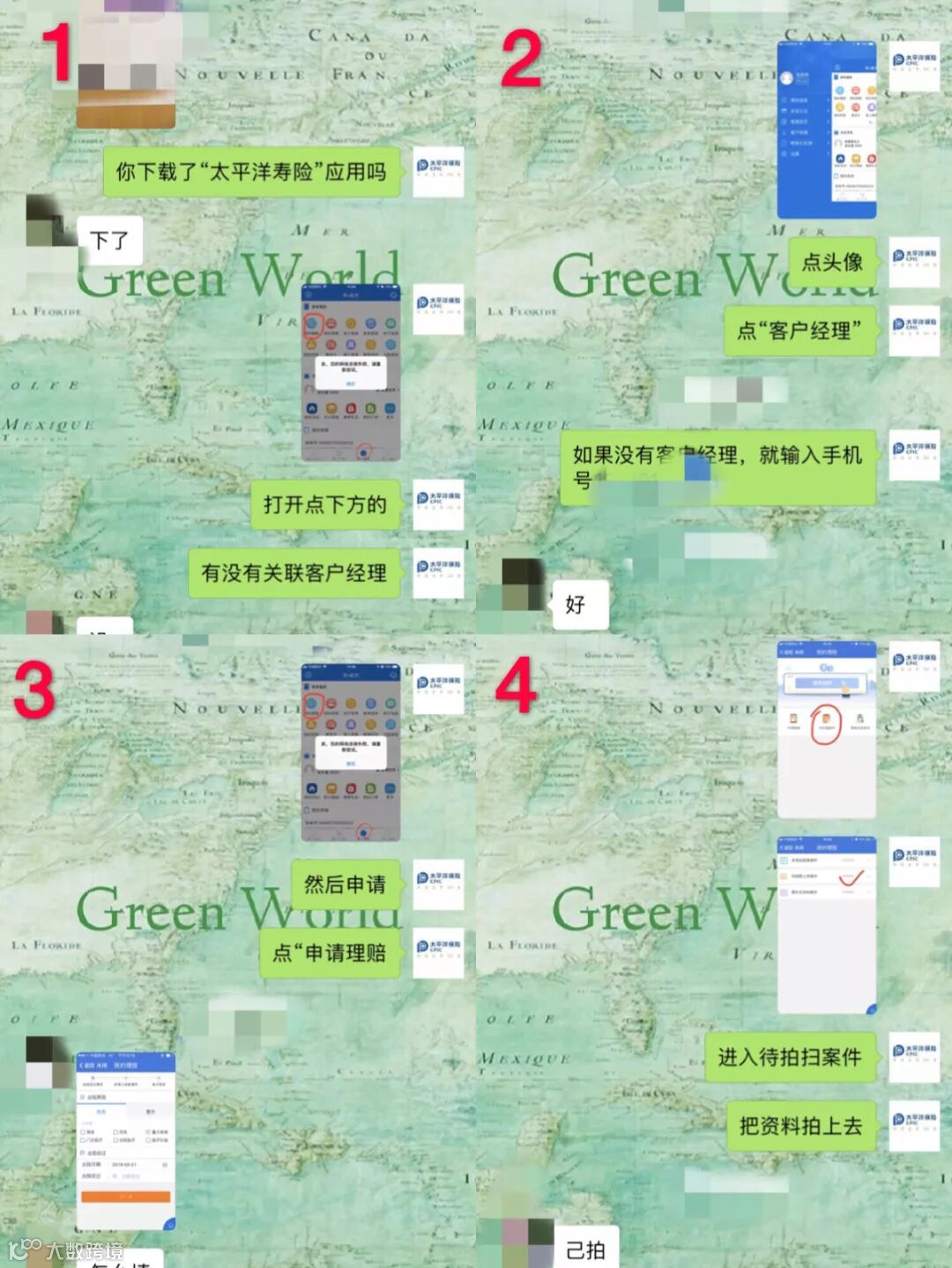 细心的小吴添加了廖先生微信,通过截屏一步步指导他通过太平洋寿险APP并进行理赔申请操作。即便是这样远程“手把手教学”,全过程也只是短短十分钟。