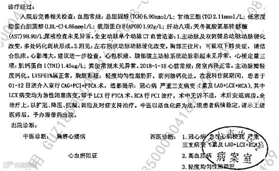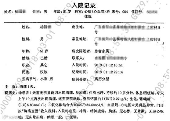 经过住院检查,杨先生被确诊为急性心肌梗死!杨先生平时身体硬朗,想不到自己的心脏居然会有问题,被吓出了一身冷汗。确诊后在医院的安排下,积极进行了介入手术治疗,于2018年1月22日办理了出院。