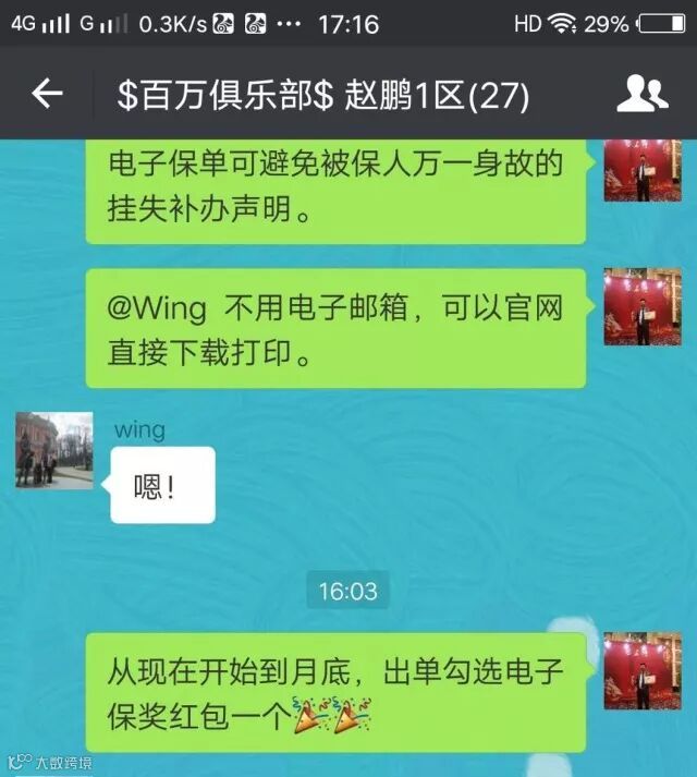 赵鹏经理大力赞赏之余要求属员全力推广电子保单,自己提供现金红包😍