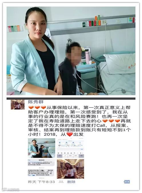 2018年3月15日,方先生致电珠海客户经理陈秀群,告知其目前转院治疗中,咨询如何办理理赔。陈经理得知情况后,第一时间赶到医院看望客户,并使用手机“太e赔”为方先生申请了提前给付重疾申请。