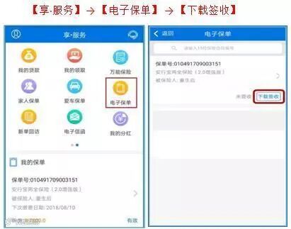 ——保单生效后通过太平洋寿险APP【享·服务】进入【电子保单】,选择要下载签收的保单点击【下载签收】,浏览后点击【立即签收】进入签字环节完成保单签收。