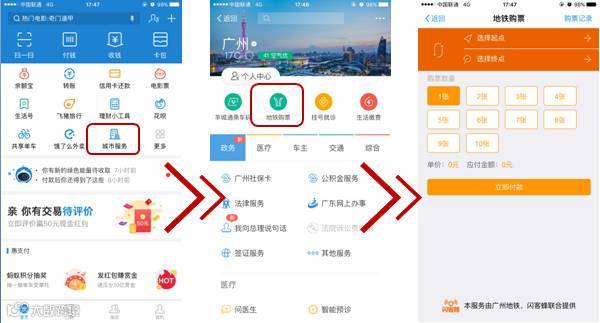 点击“城市服务”——选择“地铁购票”——根据所需进行购票。