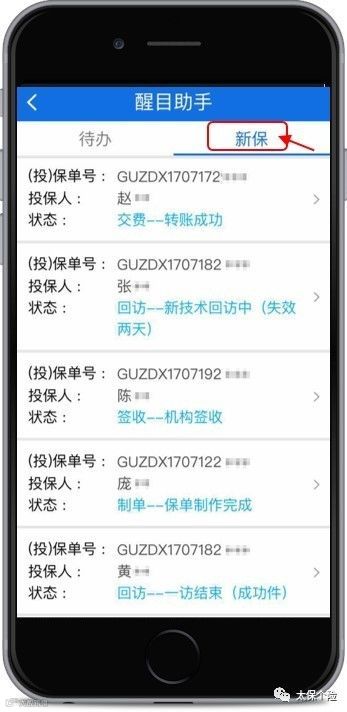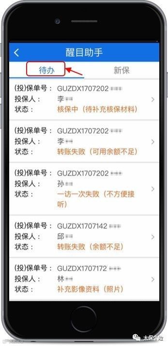 *若没有处于待办状态的保单,“待办”标签页就会隐藏起来哦~