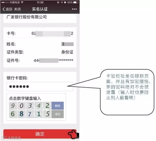 步骤三:输入银行卡密码,完成校验。点击“确定”。