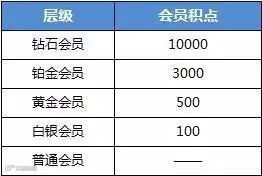 会员层级根据成长积分的高低分为:钻石、铂金、黄金、白银、普通五个级别。
