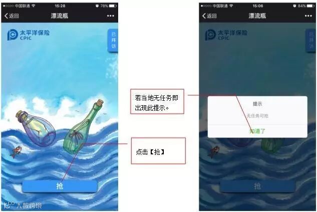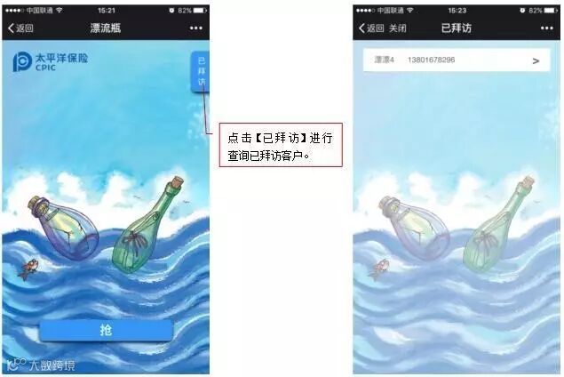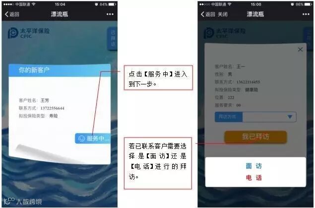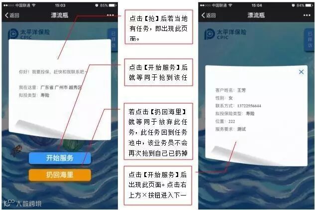 如绑定业务员归属机构所在地区有投保预约的新客户,微信会向业务员推送通知,提醒业务员抢单。