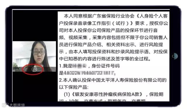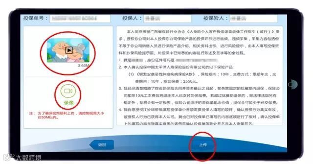 签名提交后,神行太保自动转入影像采集页面。请客户先浏览声明书内容,点击录像按钮,进入摄录页面。