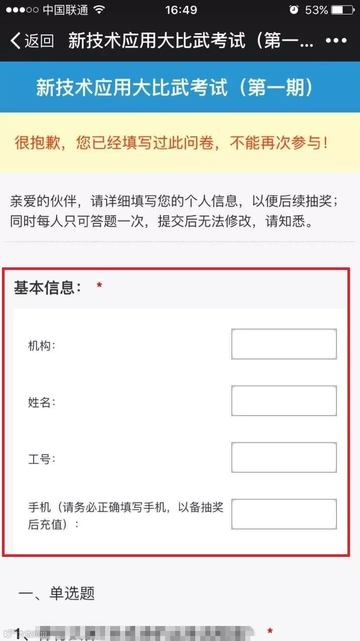 4进入答题系统,仔细填写你的个人信息哦,抽奖就靠这些了