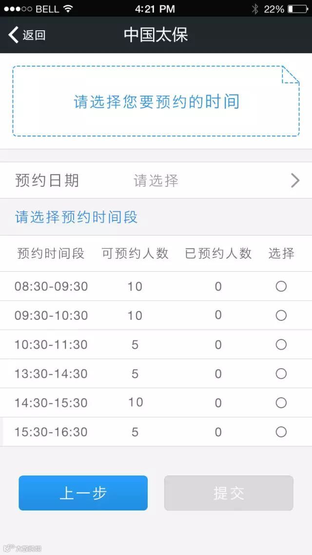 3、选择预约日期与时间段