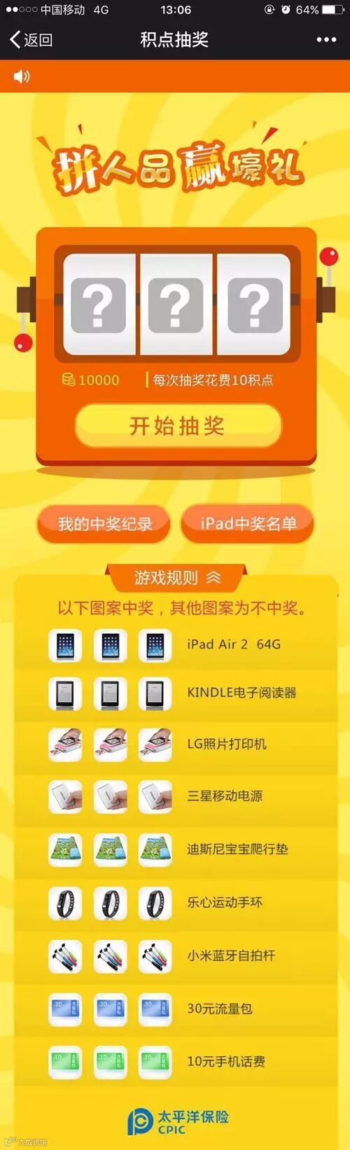 根据游戏规则抽中三个相同的Ipad图案则为中大奖!