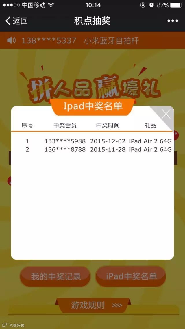 您的VIP客户还有积点没用完?客户俱乐部感恩季大回馈,花费10积点抽取幸运好礼,短短一周内,已经有两台Ipad Air II抽出了!快看看是谁的客户这么幸运抽中了大奖吧!是不是心动了呢?快邀请您的客户来参与积点抽奖吧,年末抽个痛快!
