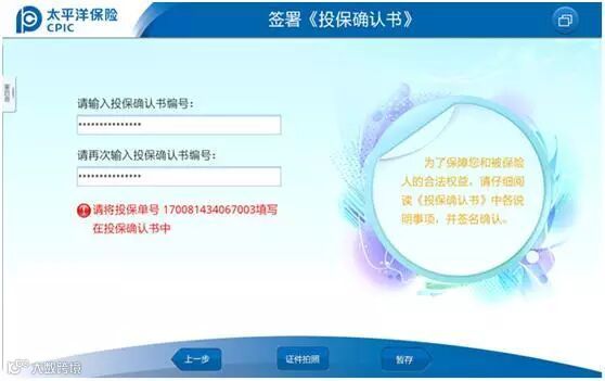 在《签署投保确认书》页面,增加了“证件拍照”按钮。绑定投保确认书号生成投保单号后,可使用该按钮拍摄客户投保资料,前端使用OCR的证件影像,也将保留,未核列表中,纸质签名投保单也相应增加“证件拍照”按钮。