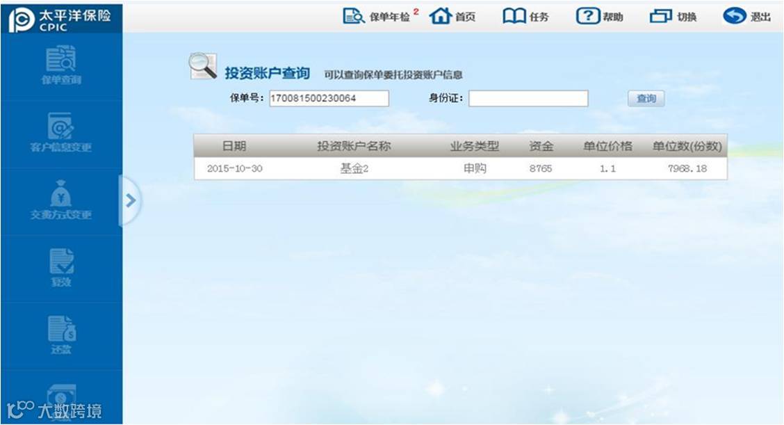 Step 3:进入查询界面,输入投保单号或者身份证号