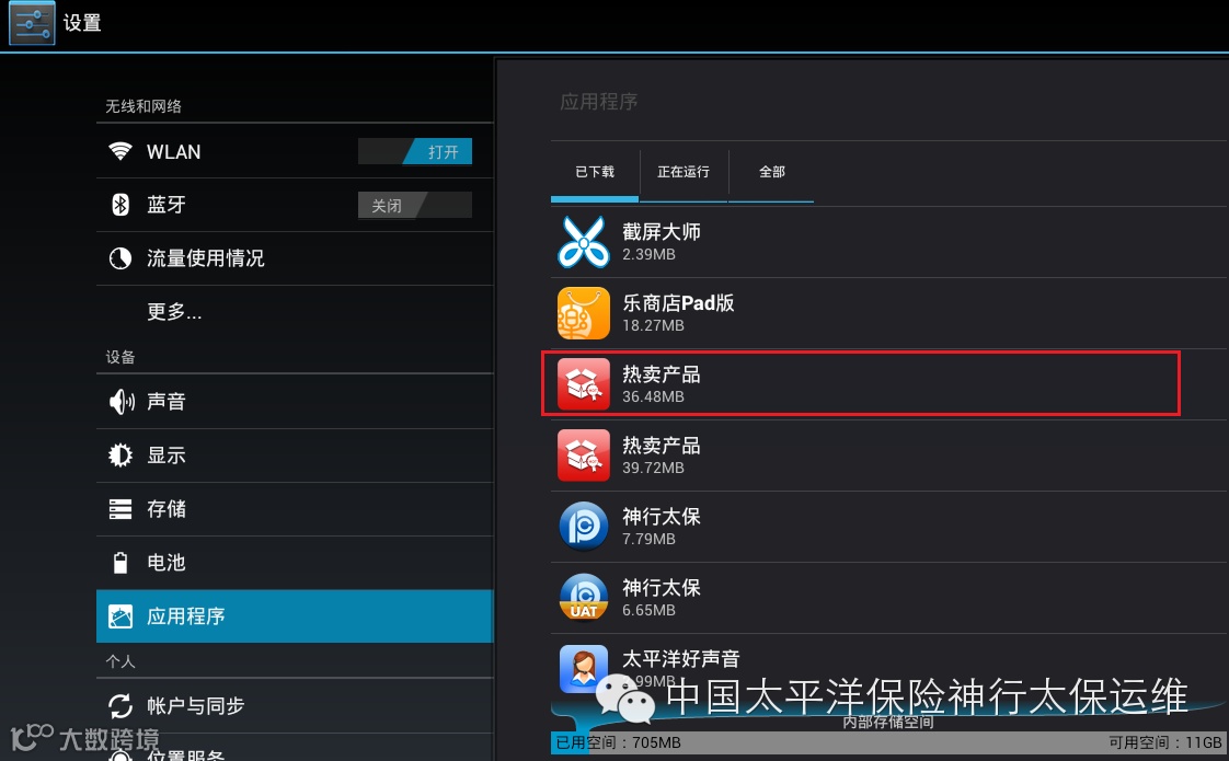 1. 进入PAD设置选项,找到应用程序列表,并在列表中点击热卖产品。
