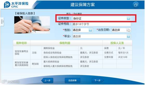 ☆建议保障方案页面,增加“证件类型”的填写项,能第一时间调取老客户信息。