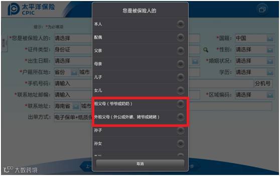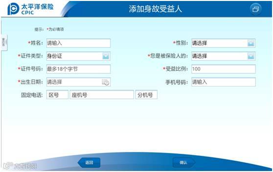 ☆身故受益人页面将原“联系电话”字段取消,拆分成“手机号码”、“固定电话”字段。