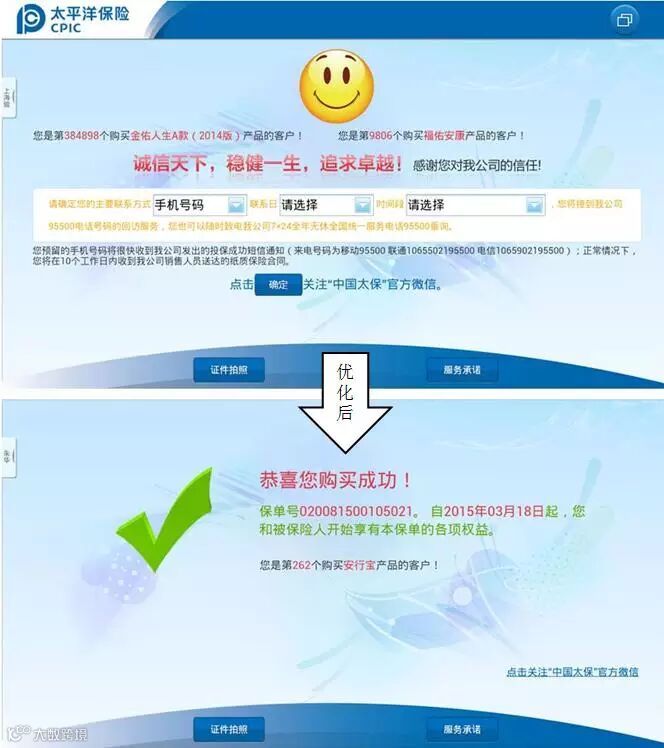 太平洋寿险广东分公司1、 “热卖产品”购买成功环节不再需要确认“预约回访时间”。这下页面也更简洁了!