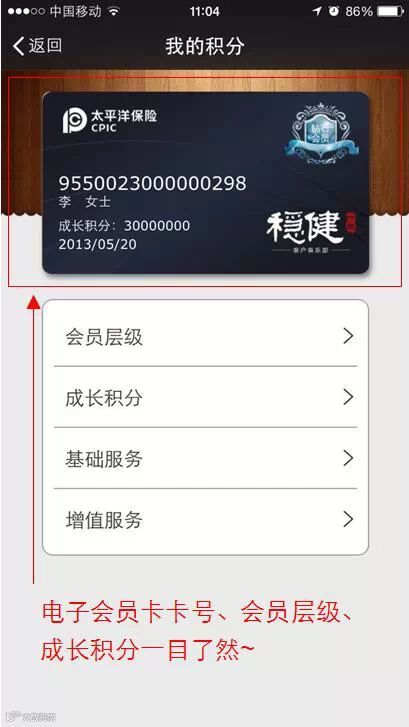 亲爱的“稳健一生”客户俱乐部会员,我的积分现已全新改版,会员层级、成长积分、会员服务查询更便捷,还有专属于您的电子会员卡。现在就登录“中国太保-我的积分”查看吧!