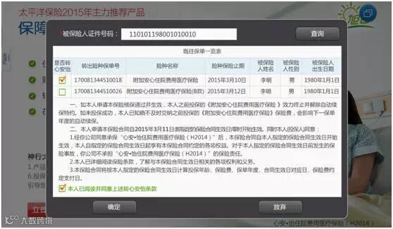 “本人已阅读并同意上述转心安怡条款”框: