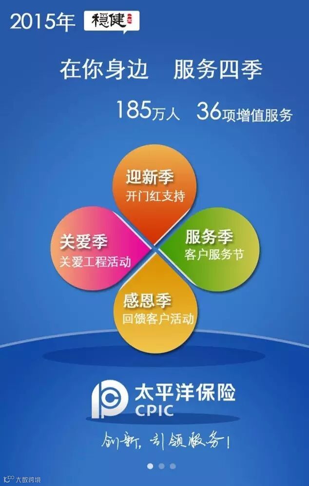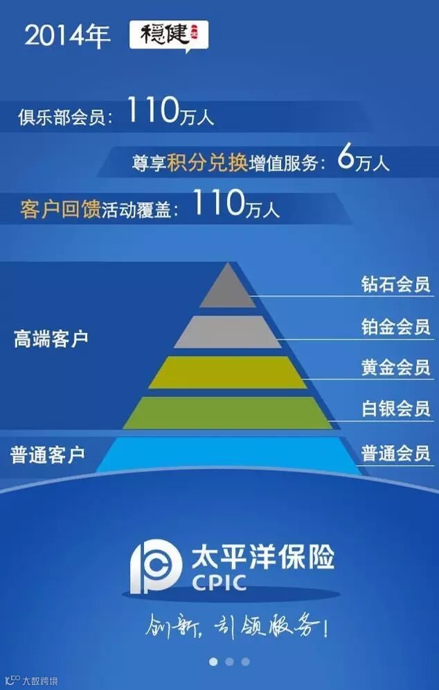 作为太平洋寿险移动应用布局的重要平台之一,“中国太保” 历经15个月已快速上线了50个产品,具备较强社交性、功能性和传播性的平台特征,源源不断吸引广大粉丝关注。太平洋寿险“稳健一生”客户俱乐部通过“中国太保”已发展了俱乐部会员110万人,并有6万中高端客户使用“积点兑换”增值服务,俱乐部活动覆盖公司客户也超过110万人,不断强化了太平洋保险“在你身边”的品牌主张。