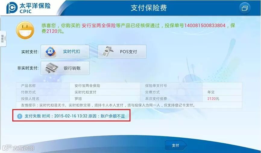 2、注意到了吗?在支付信息下方新增了上次“支付失败”原因的贴心提示,时刻提醒小伙伴们,汲取经验,这次咱们一定要成功哦!