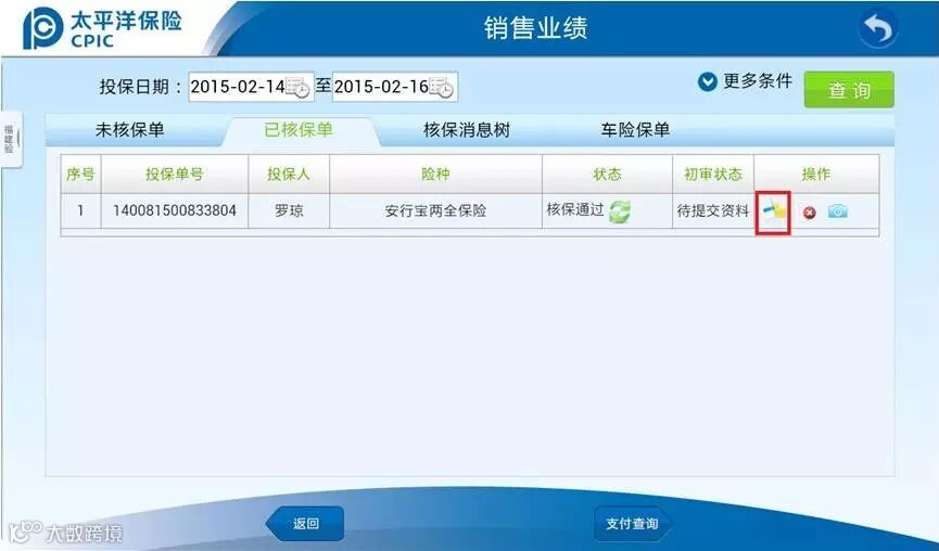 1、进入销售业绩,点击保单支付。
