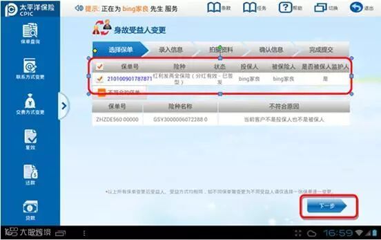 (九)选择已经录入的受益人。若有多个受益人,操作流程同上。