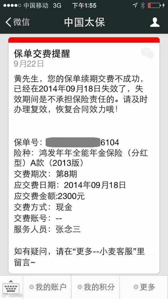 【中国太保】“保单交费提醒”新增两项服务:失效预警通知和失效中止通知。