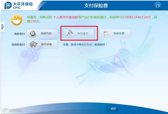 费”页面,就可以直接使用“POS”来支付保费哦。