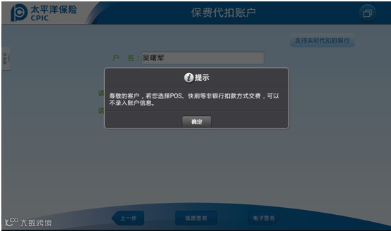 导读:1、客户这次只是购买了短期意外险。2、在“保费代扣账户”页面,系统已经自动提示不用录入账户信息了~3、客户签