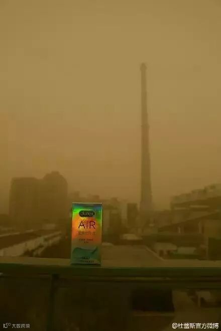4月15日,沙尘暴袭京,杜蕾斯给新品air写的文案。