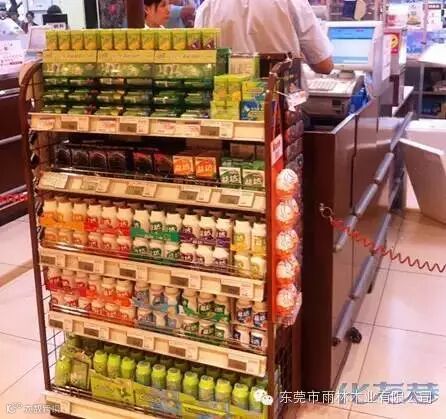 超市里摆放牛奶、冷藏柜食品时,多把最新鲜的产品摆在最里面,每天逐渐更换。