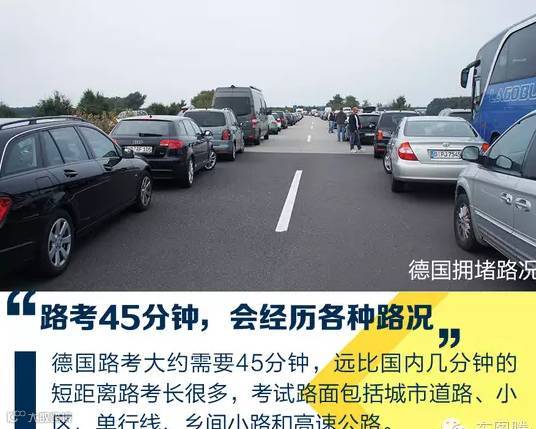 理论学习结束后需要等待约90-100天才能路考。德国路考大约需要45分钟,远比国内几分钟的短距离路考长很多,考试路面包括城市道路、小区、单行线、乡间小路和高速公路。