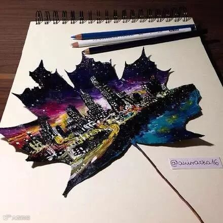 导读:波兰一位画师Joanna Wirażka 在落叶上作画,简直是一叶一星空,一片一红尘!小编的落叶已经准备好了