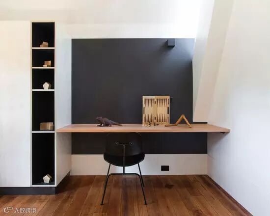 巧妙的利用家庭的角落,装上壁桌即是一个简易的书房。办公、读书、手工都可以成全的万能角。