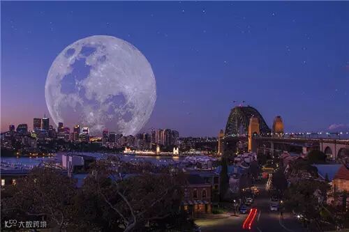 因为月亮离我们实在是太远了,所以即便说是超级月亮,毕竟也不会太大,可怎样才能让它在照片上显得非常super呢?最简单粗暴的方法当然是买个远摄镜了,不过这只适用于土豪。除此之外,还有一个方法简单易学,妇孺皆可用,只需要掌握一个小技巧:用前景来映衬超级大月亮。