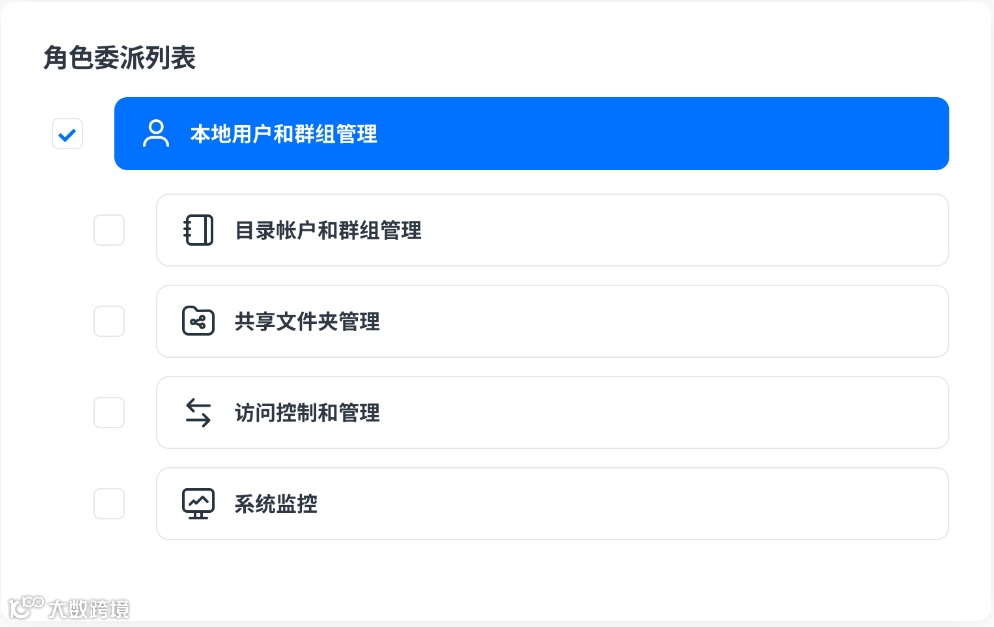 将部分权限开放给专人管控,对应公司岗位职级实现分级授权,以减轻 IT 人员设置、变更权限的工作量。