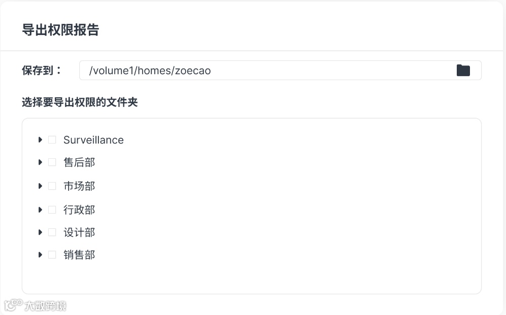 通过导出共享文件夹的权限报告,集中浏览帐户权限信息,便于进行权限的稽查审核。